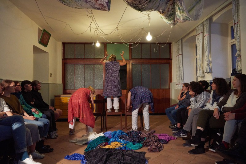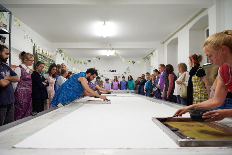 Seit der industriellen Revolution wurden Textilarbeiterinnen* in Polen durch das kapitalistische System als billige Arbeitskräfte in der maschinellen Handwerksindustrie eingesetzt. Da sie nach dem Zweiten Weltkrieg als Arbeiterinnen* einer bedeutenden Industrie hohes Ansehen erlangten, sich ihre tatsächliche Lebenslage aber kaum verbessert hatte, wurden diese Frauen* zu einer der wichtigsten Arbeiterinnen*gruppen, die sich gegen das Regime stellten. Obwohl ihre Proteste enorme Wichtigkeit für die politischen Änderungen hatten, wurden sie innerhalb der männlich dominierten Geschichtsschreibung fast vergessen. Ihre Geschichte ist die Geschichte der Revolution von Arbeiterinnen*, die die Kraft der Vereinigung entdeckt und in Solidarität miteinander neue Möglichkeiten und vor allem eigenen Selbstwert entwickelt haben. Es ist eine Geschichte, die sich in Unterdrückung, Zusammenschluss und Stärke manifestiert, die durch Aufbegehren zum Kampf für persönliche und soziale Freiheit, für Gleichberechtigung und Gleichwertigkeit aufruft. Ausgehend von Marta Madejskas Buch „Aleja Włókniarek“ („Die Allee der Spinnerinnen“) wird in dem Setting der Siebdruckwerkstätte FabricFabrik im 16. Wiener Bezirk in dieser Theaterperformance durch übersetzte Interviews und schriftliche Überlieferungen die Geschichte der polnischen Arbeiterinnen* und Revolutionärinnen* erzählt.