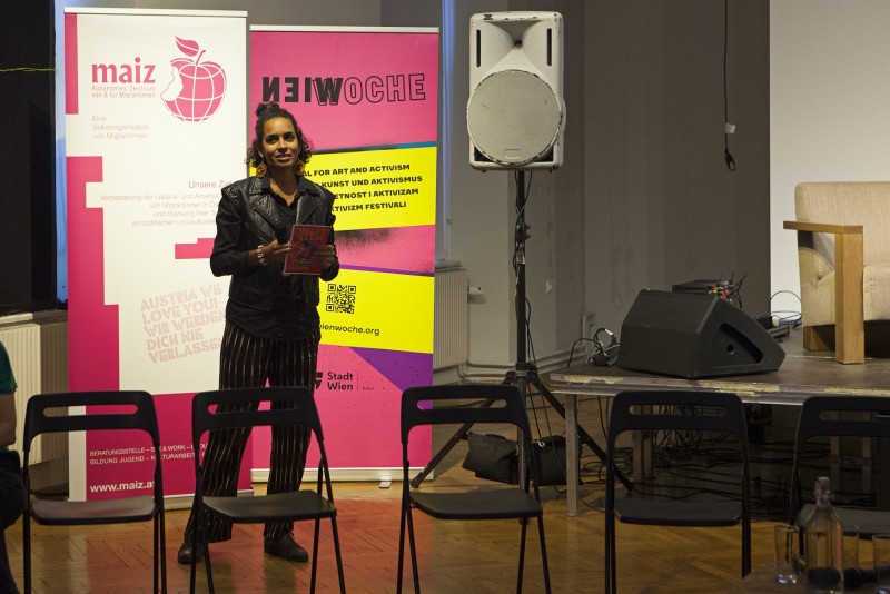 18:15 - 19:45 “Austria we love you. Wir sind immer noch da und werden dich nie verlassen“. Panel intervention with art and cultural workers in Vienna featuring Araba Evelyn Johnston-Arthur, Munira Muhamud and Vina Yun. Moderated by Marissa Lôbo (DE)