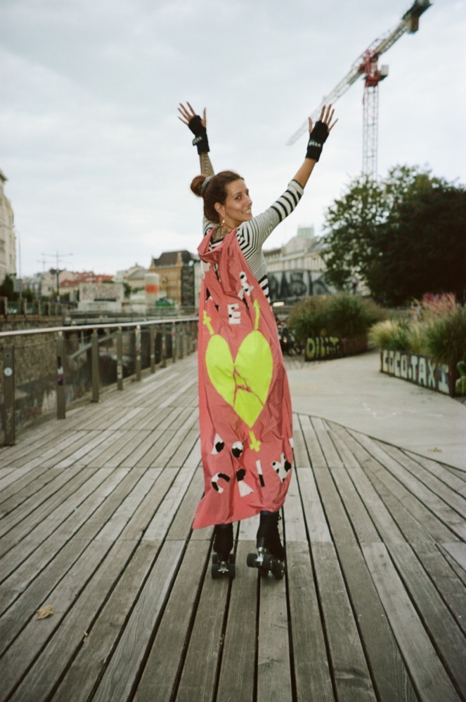 Die Fahrt startet am Stadtrand am Moisturride Kiosk, schlängelt sich lautstark durch die Innenstadt und endet über den Dr.-Karl-Lueger-Platz am Karlsplatz – einem Ort, der für die Politik der Unterdrückung steht und zugleich ein Ort der politischen Praxis und Kollektivität ist. Gemeinsam wollen wir die Geschichte von Ausgrenzung, politischer Überwachung und Kommerzialisierung erforschen und uns mit der kolonialen, antisemitischen und patriarchalen Symbolik auseinandersetzen, die entlang der Route zu finden ist. Die Vergänglichkeit der physischen Präsenz wird durch temporäre Installationen in diesen Räumen und eine Zine-Präsentation im Kiosk erweitert.